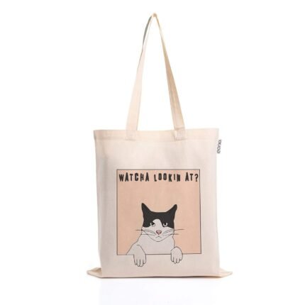 Amazon Brand – Eono, 100% Cotton Tote, Pack of 1, Reusable Tote Bags For Women, Shopping Bag For Grocery,Vegetable Bags For Market, Aesthetic Office Bag For Women, Bag For Women College Stylish-Watcha