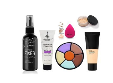 6 In 1 Pro Concealer Palette Waterproof Concealer – Foundation, Primer, Liquid Concealer,Loose Powder Compact Powder & Makeup Fixer (Setting Spray) – NEW Face Makeup combo – Complete Makeup