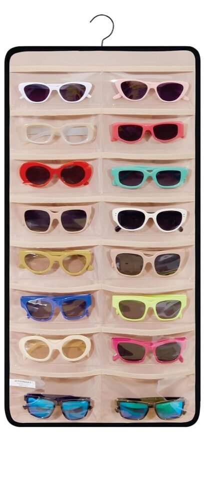 Blendmix Sunglasses Organizer Storage Hanging Dust Proof Sunglasses Storage Case Wall Mounted, Travel Dual Sided Glasses Case Multiple Pairs, Eyeglasses Holder with 24 Clear Slots (IVORY)