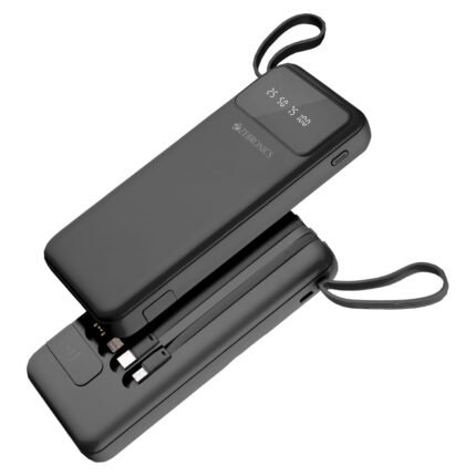 ZEBRONICS MB10000S6 (V1) Power Bank, 10000 mAh, 10W, 5 x Outputs – Dual USB A | Type C | Micro USB | Lightning, Built in I/O Cables, Percentage Display, Carry Loop, Made in India (Black)