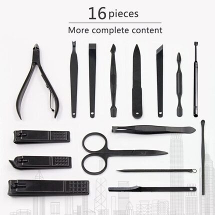DOCOSS 16 IN 1 Stainless Steel Professional Manicure & Pedicure Kit For Men and Women Includes A Nail cutter, Acne Remover needle, Blackhead Tool With Leather Case