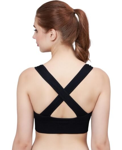 PLUMBURY Women’s Padded Cross Back Medium Support Sports Bra, Size XL, Black – Polyamide