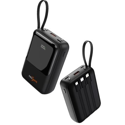 Callmate 10000mAh Flashlight Power Bank, 23W Fast Charging | Buit in Cables | 5 Output Ports and 3 Input | Digital Display (23 W, Power Delivery 3.0) (Black, Lithium Polymer)