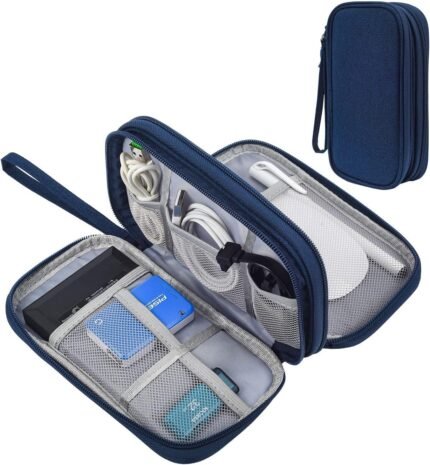 SaleOn 8.3×5 inch Portable Storage Organizer Bag for USB Cable, Earphone, Power Bank, Mobile Charger, Hard Disk & Digital Gadgets with Mesh Pockets, Dual Zippers & Elastic Loops, Inside Color May Vary