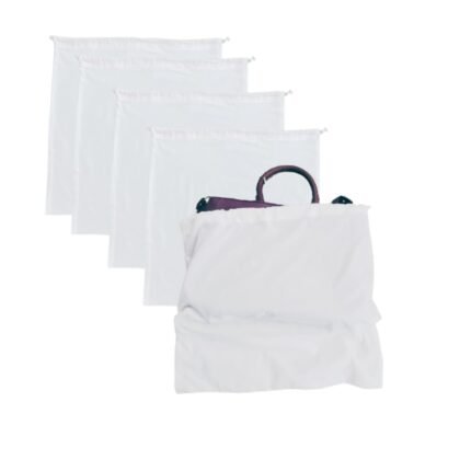 Dcluttr dust bags for handbags | Pack of 5 Odour resistant cotton handbag covers for storage | Dust cover storage bags for Handbags, Purses, Shoe Boots | Travel Storage Pouch with drawstring closure