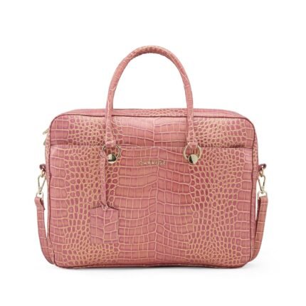 Caprese Miranda Laptop Bag Pink Large – Trendy Handbag for Women | 15’’ Laptop Compartment, Spacious, Detachable Sling Strap, Top Zip Closure, Laptop Bag for Women | Perfect for Office & Daily Use