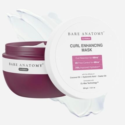 Bare Anatomy Curl Enhancing Hair Mask | Smoothens & Conditions Hair with Curl Retention & 2X Frizz Protection For 48 Hours | Coconut Oil, Hyaluronic Acid & Castor Oil | Sulphate & Paraben Free | 250g