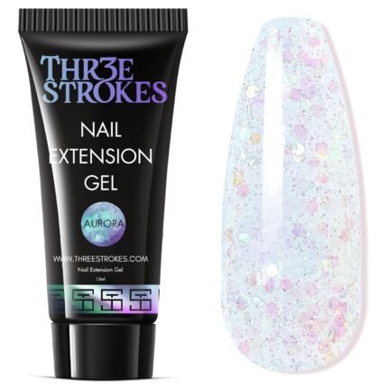 THR3E STROKES Poly Nail Gel 15ML Gel Builder for Nails, Glitter Clear, Gel Nail Extension,Nail Strengthener Hard Gel Color Gel Multifunctional Long-Lasting and Easy to Use for DIY Salon Quality (AURORA)