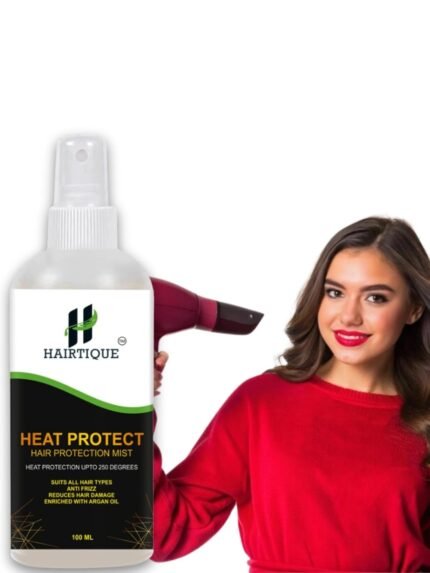 HAIRTIQUE Heat Protectant for Hair – Heat Protection Spray, Hair Protection Mist, Hair Protection Spray from Heat Upto 250 Degrees, Suits All Hair Types, Anti Frizz, Enriched with Argan Oil – 100 ml