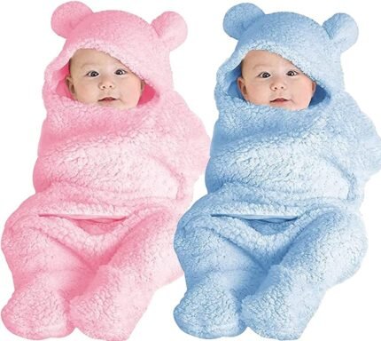 BRANDONN Baby Blanket New Born Pack of Wearable Swaddle Wrapper Security Blanket for Kids for 0-6 Month Babies (Pink Sherpa, 70 cm x 70 cm)