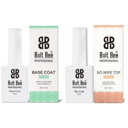 Gleevia No-Wipe Glossy Top Coat & Base Coat Combo Pack 15ml Each – Professional Gel Nail Polish Kit for Long-Lasting High Gloss Finish | Soak-Off UV/LED Gel DIY Manicure at Home (Set of 2)