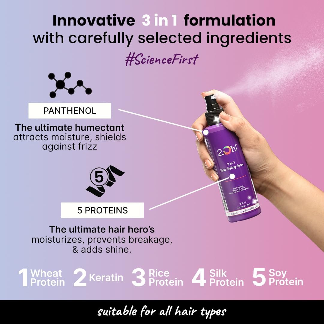 2.Oh! Italian 3-in-1 Hair Styling Spray | Heat Protectant for Hair | Hair Volumizer Spray | With Panthenol and Proteins | No Residue Hair Shine Spray | Natural Hold Hair Spray for Men and Women