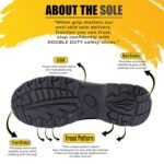 Anti-skid sole design for enhanced traction on wet and oily surfaces. Stylish design suitable for both work environments and casual wear