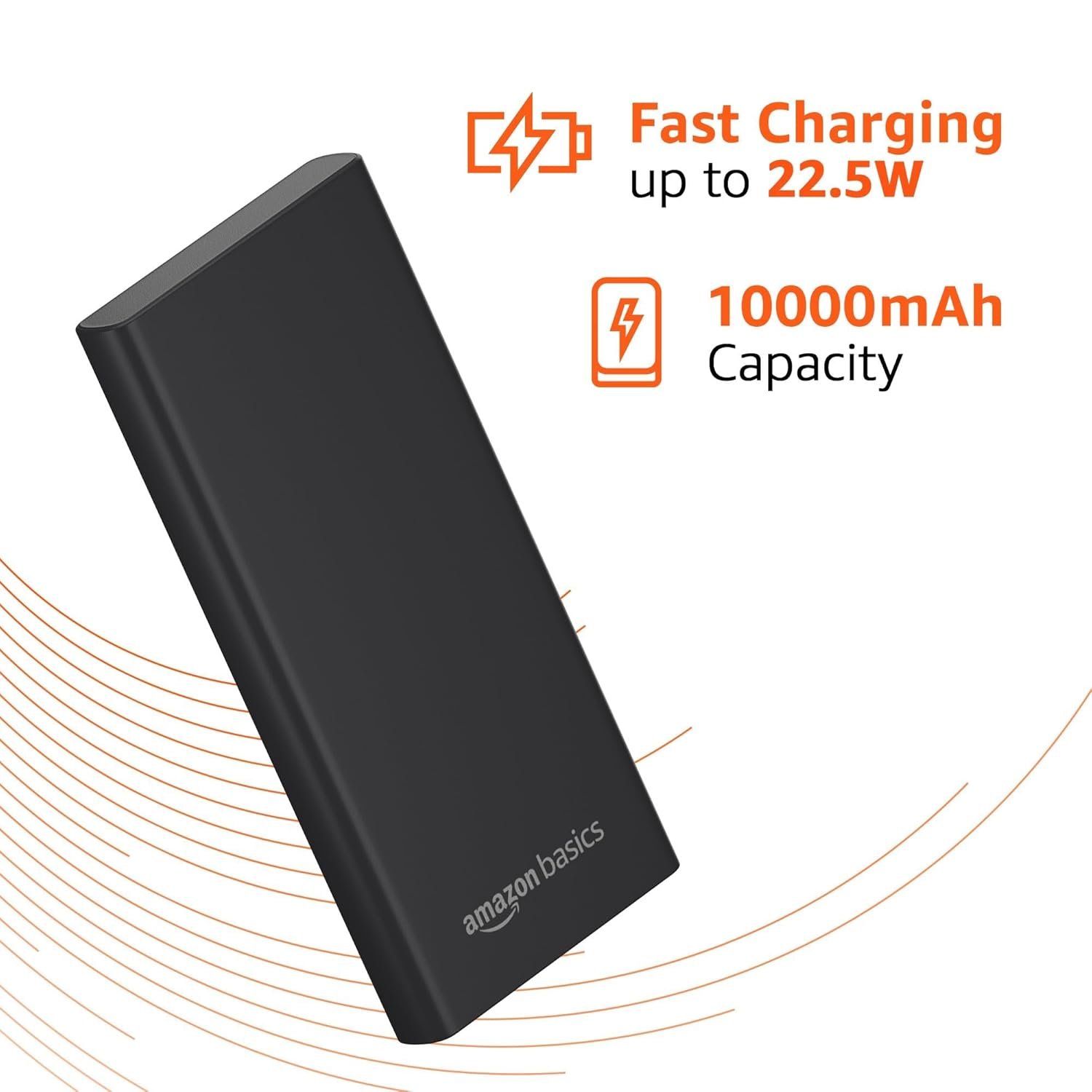 Amazon Basics 10000mAh 22.5W Fast Charging Power Bank with Cable | Triple Output Ports |Dual Input Ports | Lithium Polymer Power Bank | Compact Metal Body (Black)
