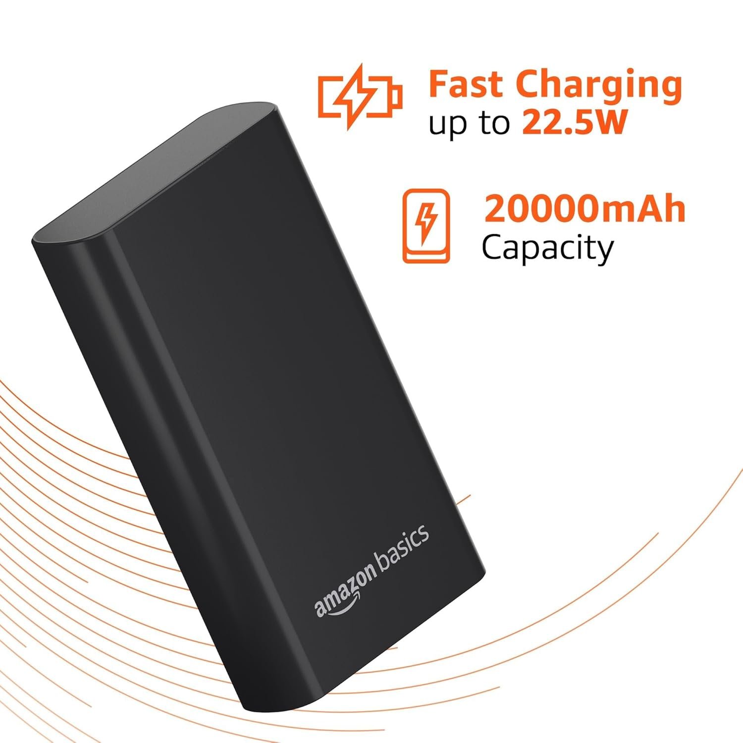 Amazon Basics 20000mAh 22.5W Fast Charging Power Bank with Cable | Triple Output Ports |Dual Input Ports | Lithium Polymer Power Bank | Compact Metal Body (Black)