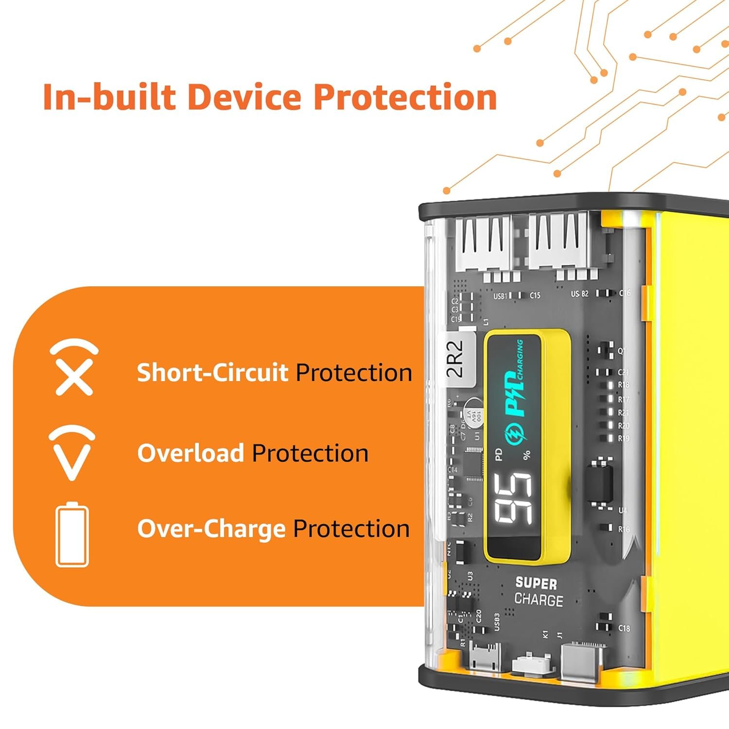 In-built Device Protection Ensures safety with short-circuit, overload, and over-charge protection, safeguarding your devices during charging for worry-free usage.