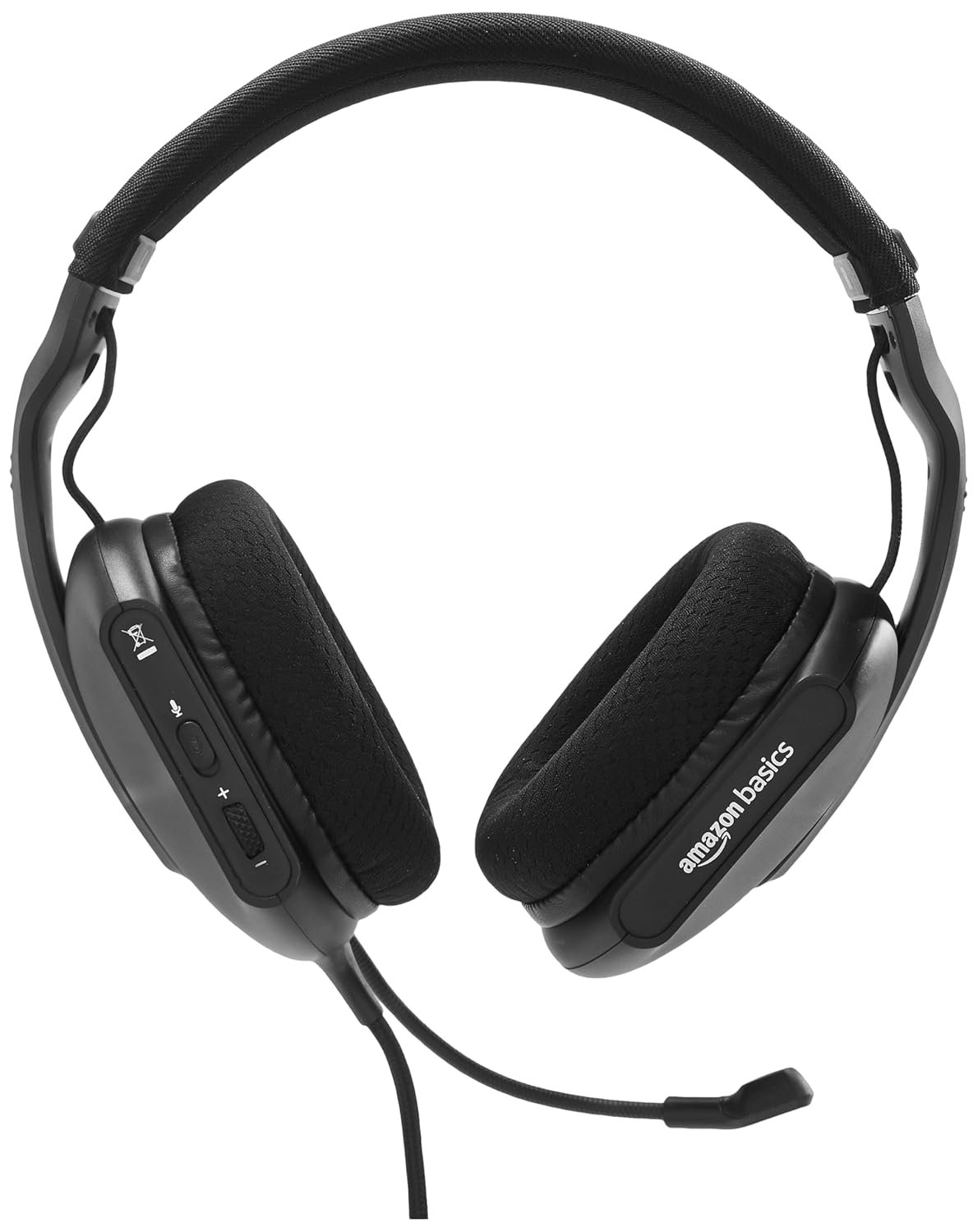 amazon basics RGB Wired Gaming On Ear Gaming Headphone, 2 Meter Braided Cable, with mic, Breathable Fabric Earcups, Sleek Design, 3.5mm + USB Connector (Black)