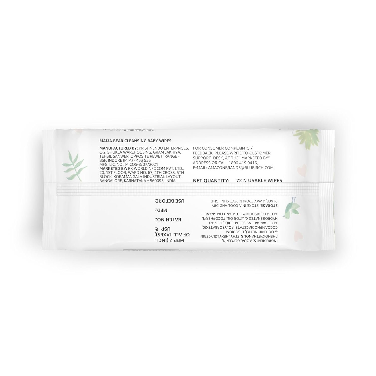 SOFT ON BABY’S SKIN: The wipes are enriched with Vitamin E and glycerine which moisturizes and cleans your baby’s sensitive skin without causing any dryness or irritation.