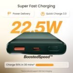 Fast Charging Output – Equipped with 22.5W PD and QC output, this powerbank ensures fast charging so you can stay ahead of the game. On average, it can charge your mobile up to 50% in just 30 minutes.