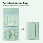 Portable case: Leather storage case protects tools and keeps them organized for on-the-go manicures.