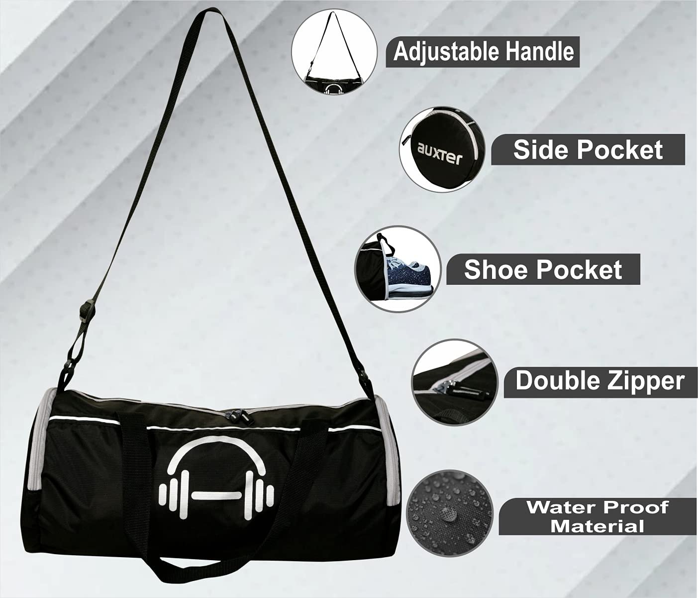 Auxter Duffel Gym Bag,Shoulder Bag for Men & Women with Separate Shoe Compartment, Black