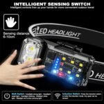 Multifunctional Design: This LED headlamp serves as a headlamp, flashlight, and work light, offering three tools in one compact device. Ideal for various activities, it includes a mini torch, cob light, and small torch light for camping and outdoor use.