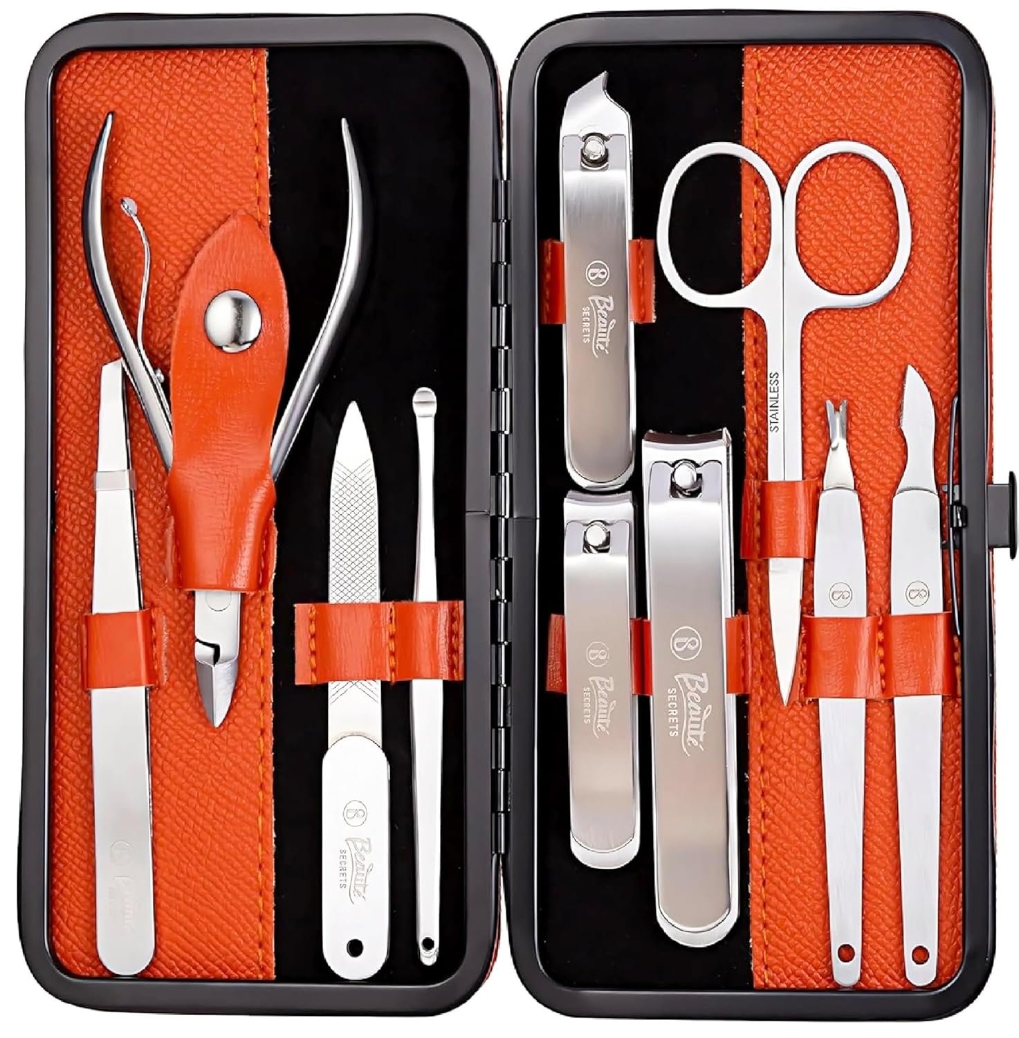 Beauté Secrets Premium Manicure Pedicure Kit – 10-Piece Nail Cutter Set with Nail Clippers, Cuticle Trimmer, Nail Filer, Tweezers, Beauty Scissors & Grooming Tools, Perfect Manicure Kit for Women & Men