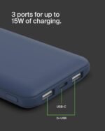 Belkin Portable Charger, USB-C Power Bank 10000mAh w/ 1 USB-C Port and 2 USB-A Ports, 15W w/USB-A to USB-C Cable for iPhone 16, 16 Plus, 16 Pro, 16 Pro Max, Samsung Galaxy S24, & More – Blue