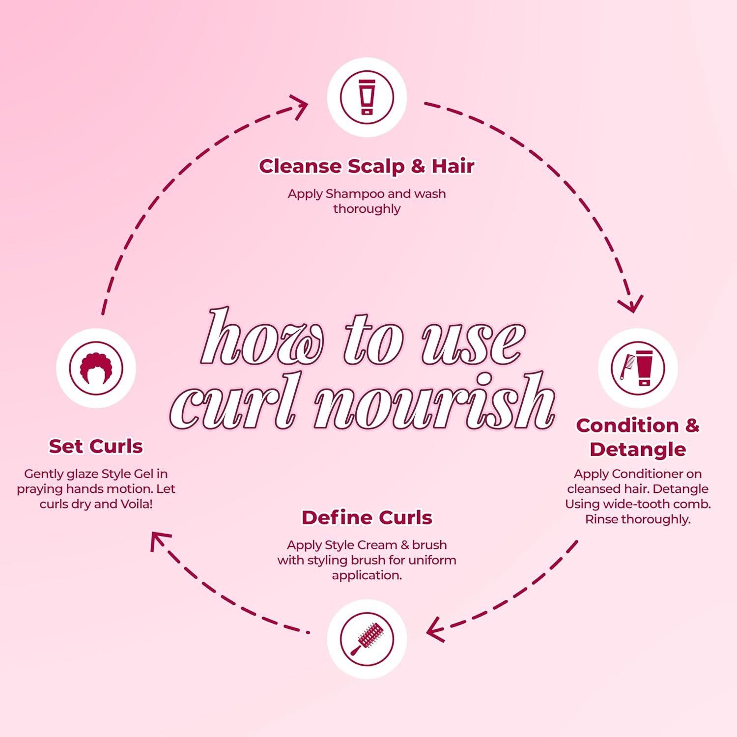 Important things to note when you’re following a curly-hair routine 1) Sleep on a satin-pillowcase or wear a scarf or bonnet to protect your curls. Cotton pillowcases create frizz 2) Use a micro-fiber towel. Cotton towels create frizz. 3) Do not dry-brush or cob your curls, especially after applying styling products.