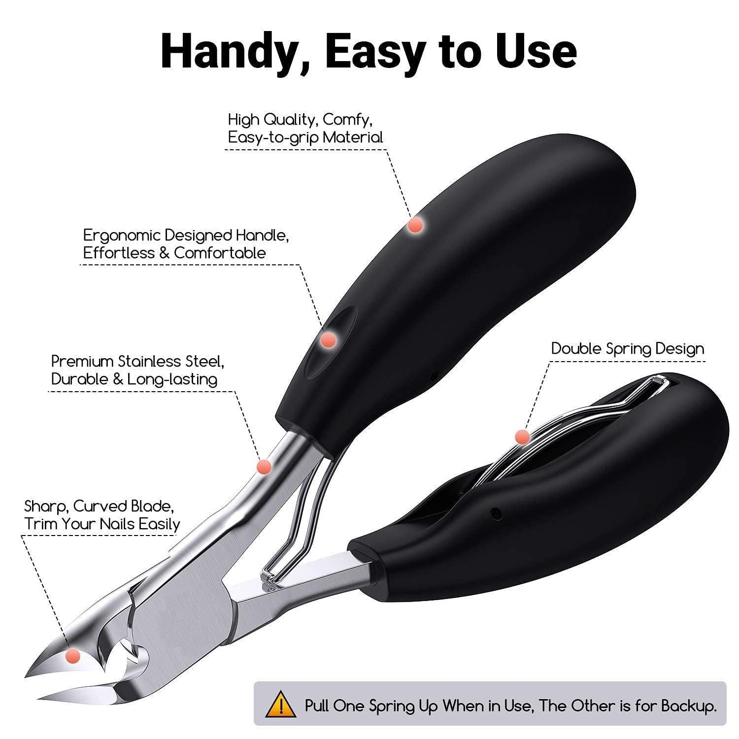 PROFESSIONAL DESIGN: Heavy-duty toenail clipper with ergonomic black rubber grip handles for comfortable and precise cutting of thick toenails