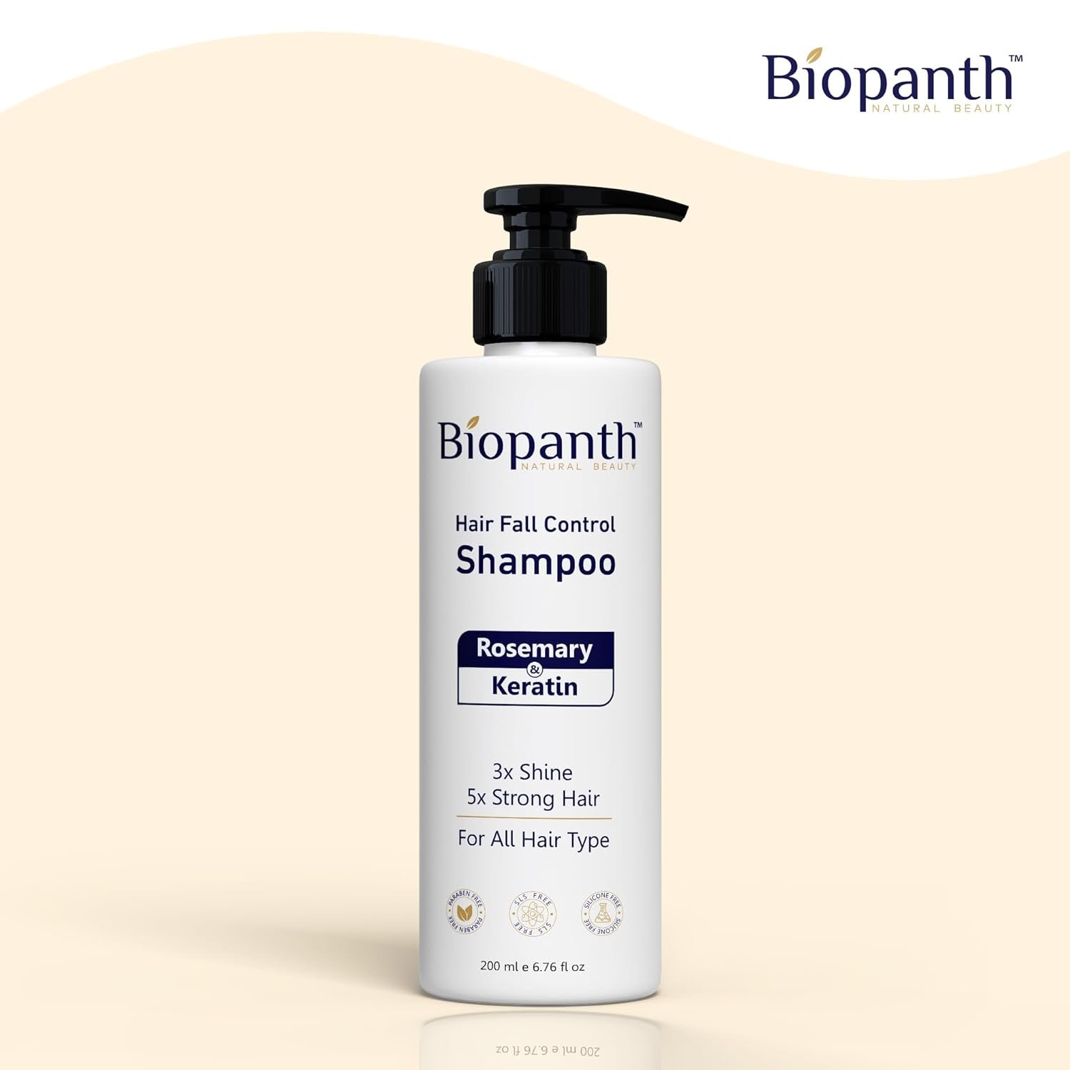 Biopanth Hair Fall Control Shampoo |Rosemary & Keratin |3X Shine & 5X Strong Hair| Sulphate & Paraben Free |All Hair Type |For Women & Men | 200ML