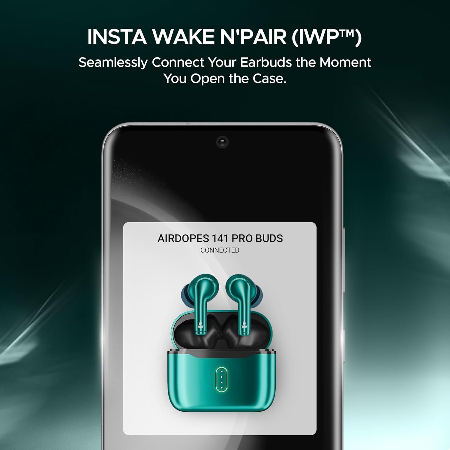 boAt Airdopes 141 Pro Buds, 13mm Drivers, Metallic Finish, 60HRS Battery, 4Mics ENx, Fast Charge, IPX5, v5.3 Bluetooth Earbuds, TWS Ear Buds Wireless Earphones with mic (Martian Green)