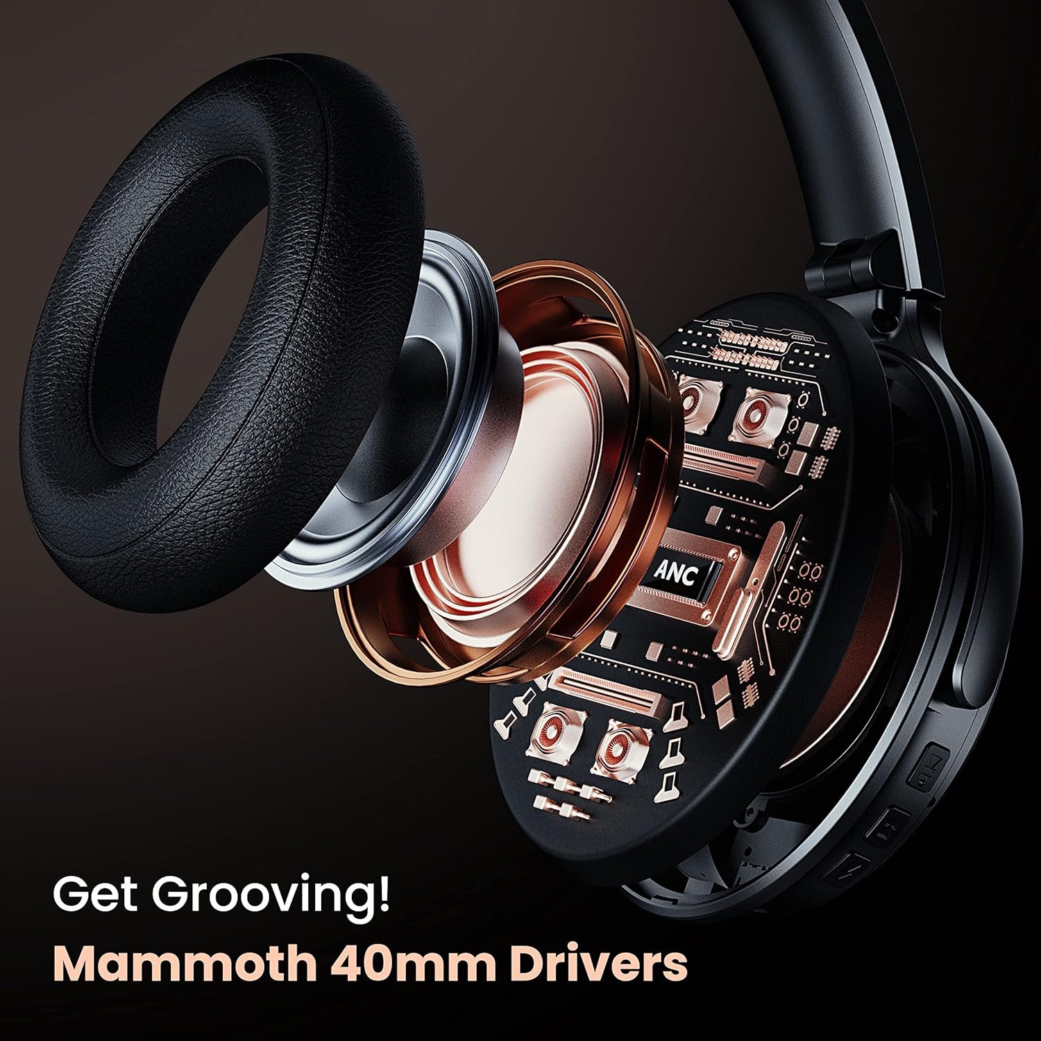 Boult Audio Anchor Bluetooth Wireless Over Ear Headphones with Mic, Active Noise Cancellation, 30H Playtime, AUX Option, Type-C Fast Charging, Massive 40mm Drivers, Sweatproof Gaming ANC Headphones