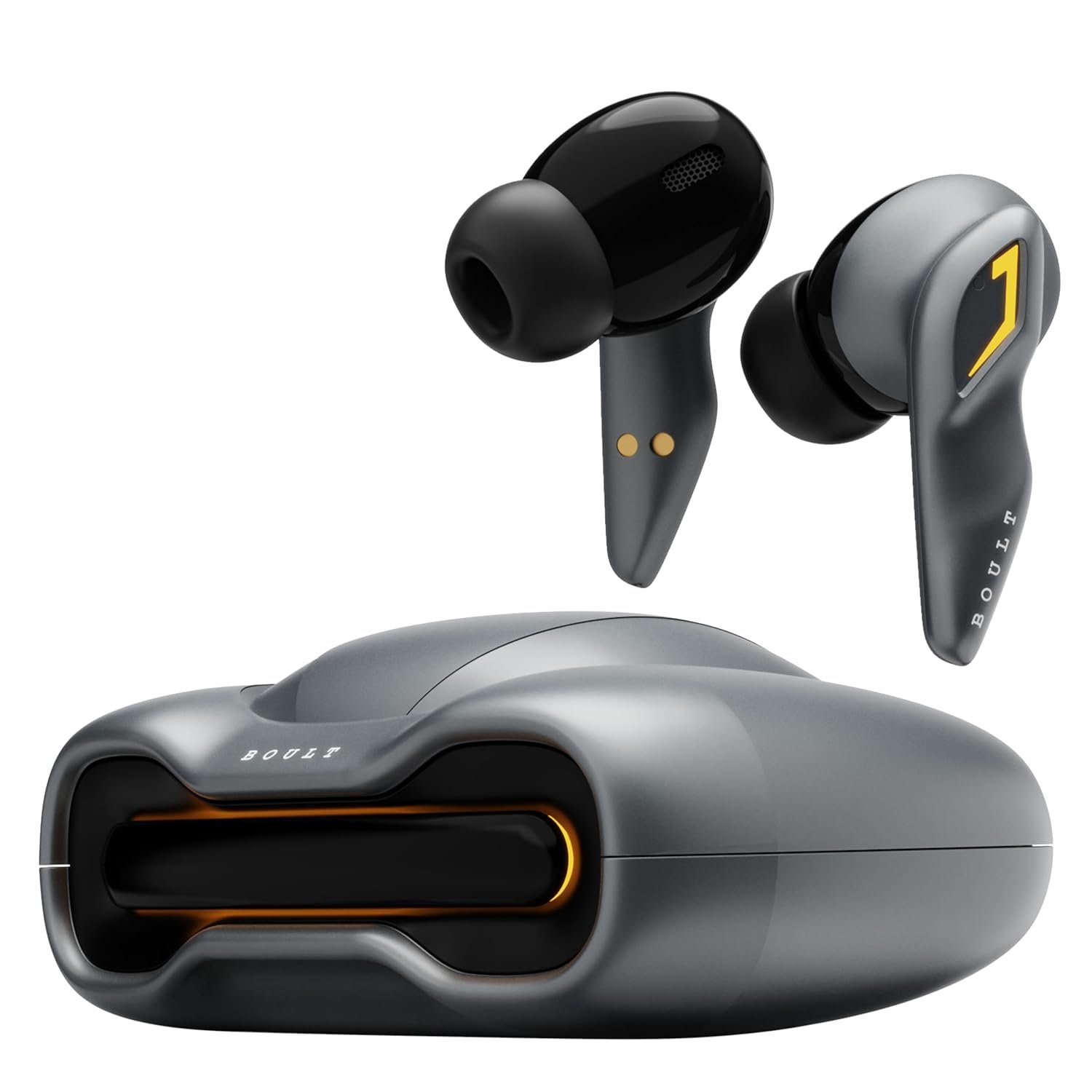 Boult Audio UFO Truly Wireless in Ear Earbuds with 48H Playtime, Built-in App Support, 45ms Low Latency Gaming, 4 Mics ENC, Breathing LEDs, 13mm Bass Drivers Ear Buds TWS, Made in India (Smoky Metal)