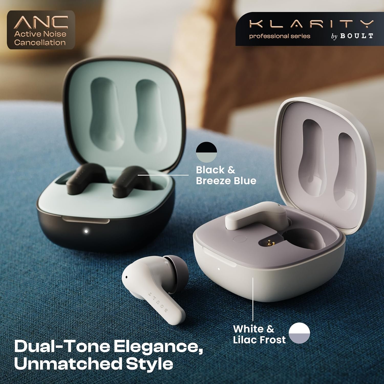 Boult Newly Launched Klarity 4 in Ear Earbuds with 60H Playtime, 35dB Active Noise Cancellation, 4 Mics Calling, 45ms Low Latency, 10mm Driver, Type-C Fast Charging, TWS ANC Ear Buds Wireless (Black)