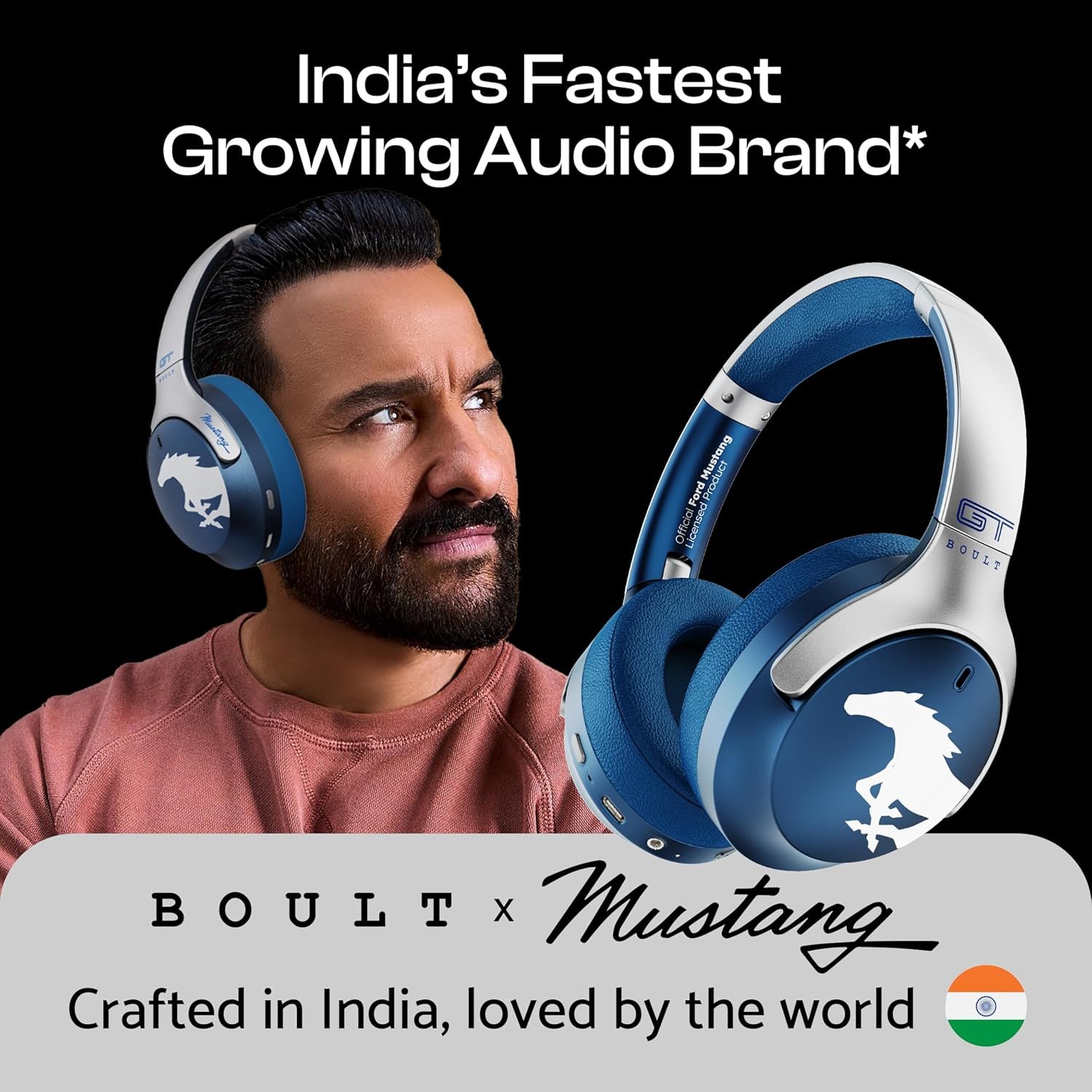 Boult X Mustang Newly Launched Q Over Ear Bluetooth Headphones with 70H Playtime, 40mm Bass Drivers, Zen™ ENC Mic, Type-C Fast Charging, 4 EQ Modes, Bluetooth 5.4, AUX Option, IPX5 Wireless Headphones