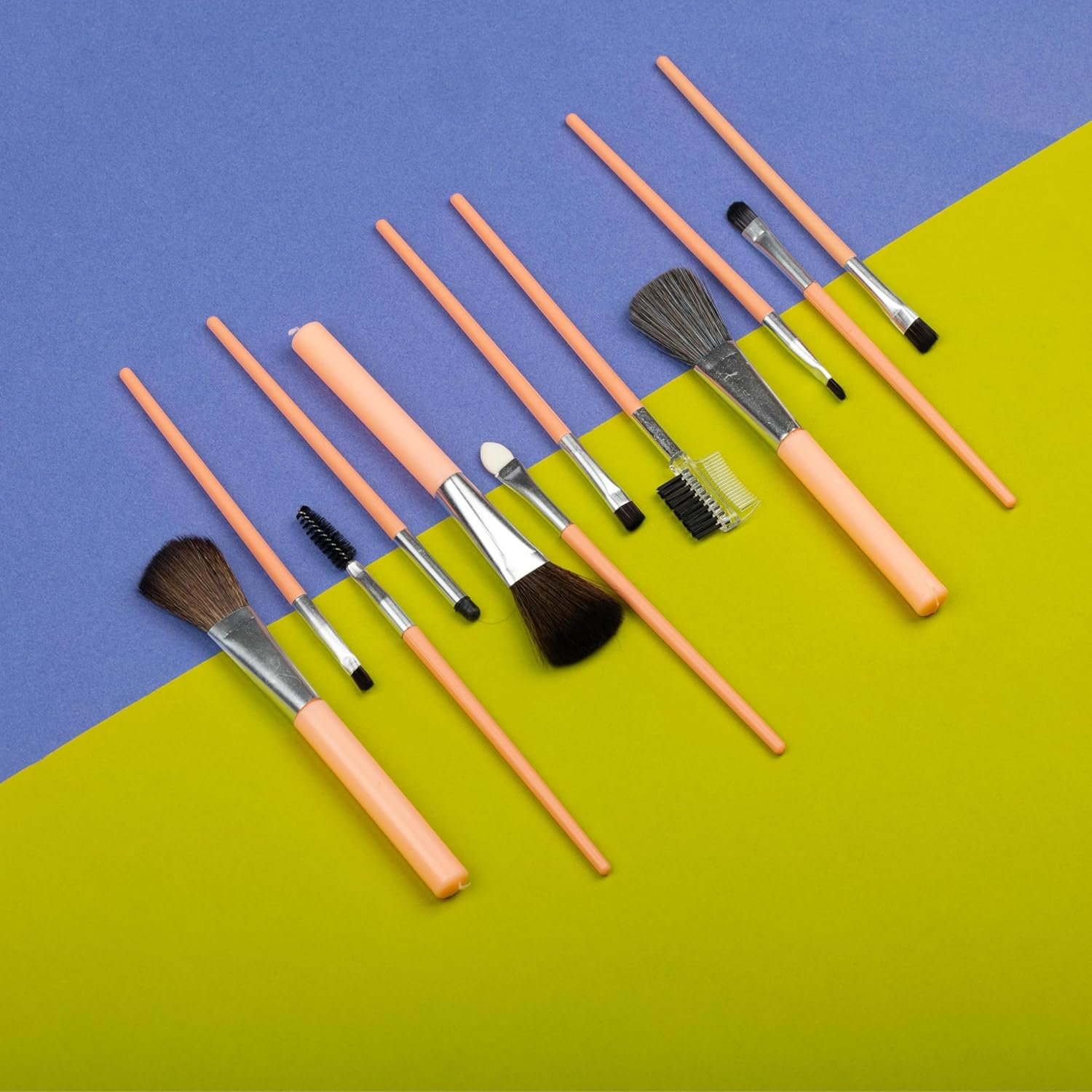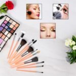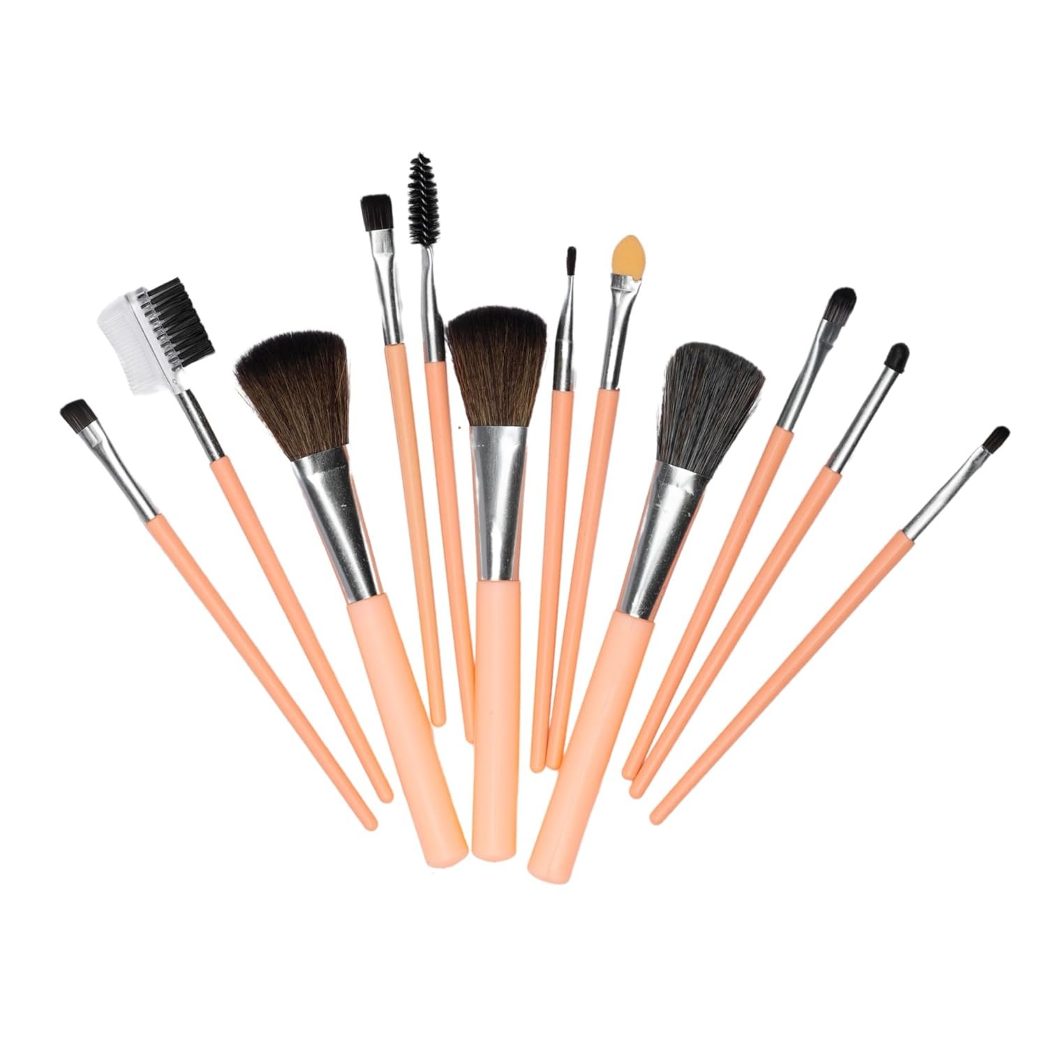 BRAVIK Set Of 12 Pieces For Professional Party Makeup Foundation Eyeshadow Ebbrow mascara Brushes Face Powder Brush, Travel Size Cosmetic Brushes Kit For Face Foundation Brush Eyeshadow With Storage (Multicolor) (Coral Pink)