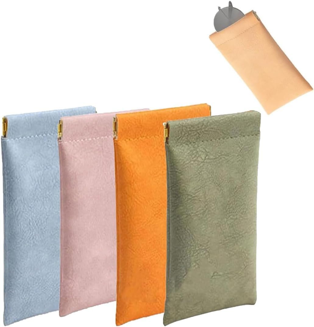 Cannagenix Snap Closure Leather Organizer Pouch, Leather Squeeze No Zipper Organizer Purse, Portable Small Pocket Makeup Bag Travel Storage Pouch, Soft Leather Sunglasses Bag (1)