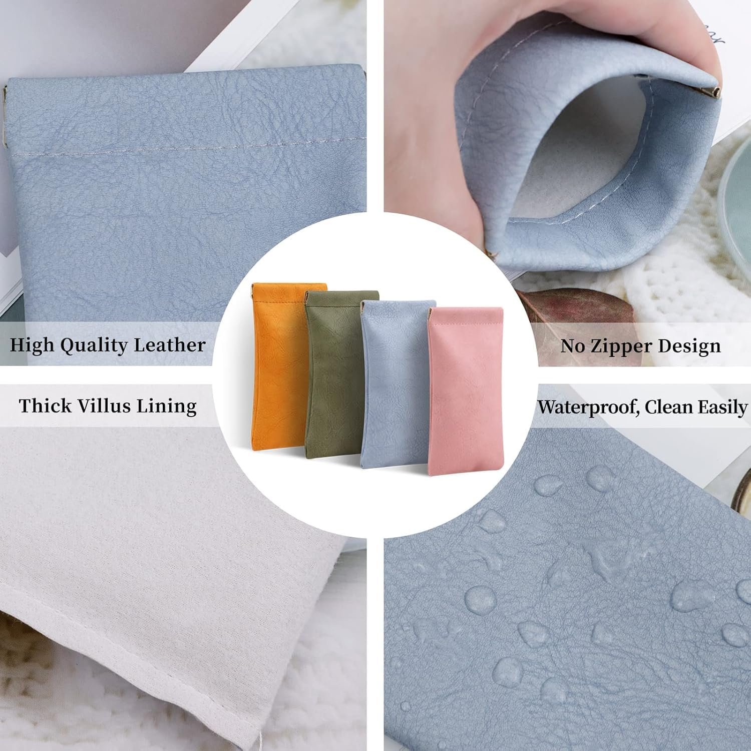 ποΈποΈ SQUEEZE TOP CLOSURE : The convenient squeeze top closure makes accessing your makeup, jewelry, coins, or keys a breeze. No need to fumble with zippers.