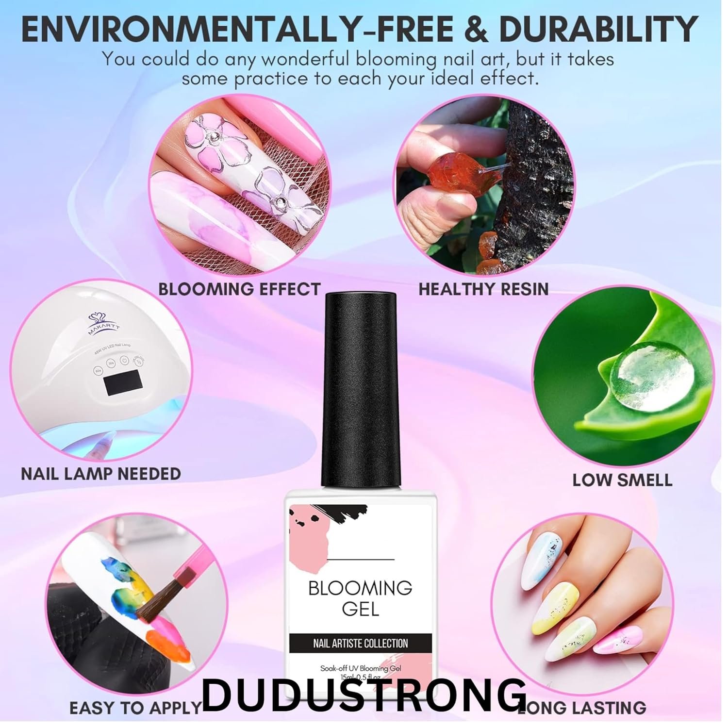 ❤Environmental & Healthy❤: The Dudustrong blooming gel nail polish are made from Toxin Free Ingredient which makes it safe and has low odor. No harsh ingredients or adhesives that lead to damaged nails. Endless designs if you know how to use this product.