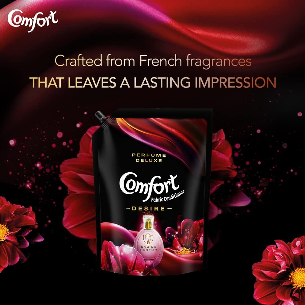 Comfort Perfume Deluxe, Desire, Fabric Liquid Conditioner Crafted With French Perfume Fragrances, 2 Ltr Pouch, Floral, Orange