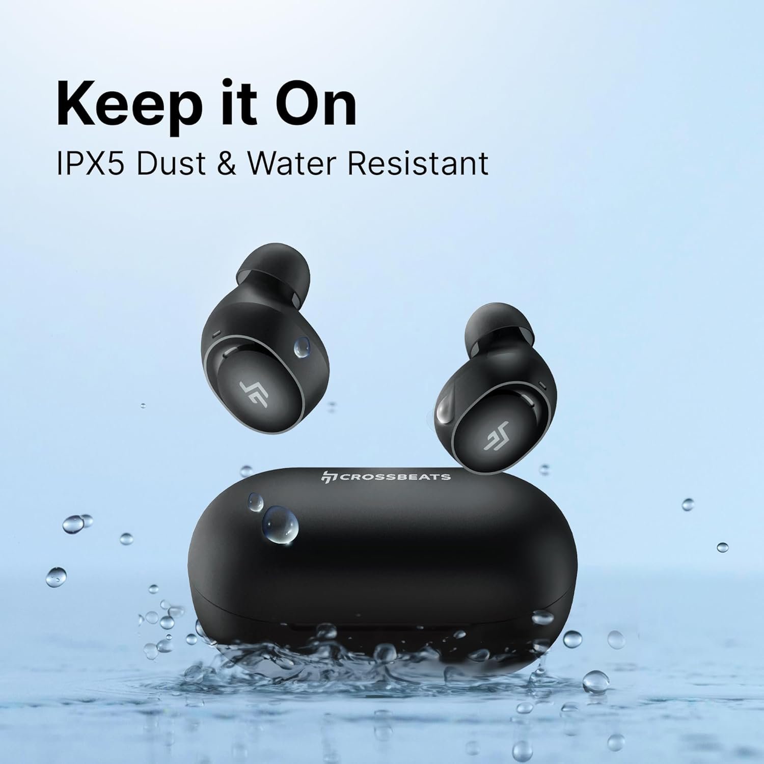 CrossBeats Groov Max True Wireless Earbuds with 100 Hrs Playtime | Quad mic Built-in ENC | Bluetooth 5.3 TWS | 40ms Low Latency Gaming Mode | 3D Sound | 10min Fast Charging | IPX5 Water Resistance
