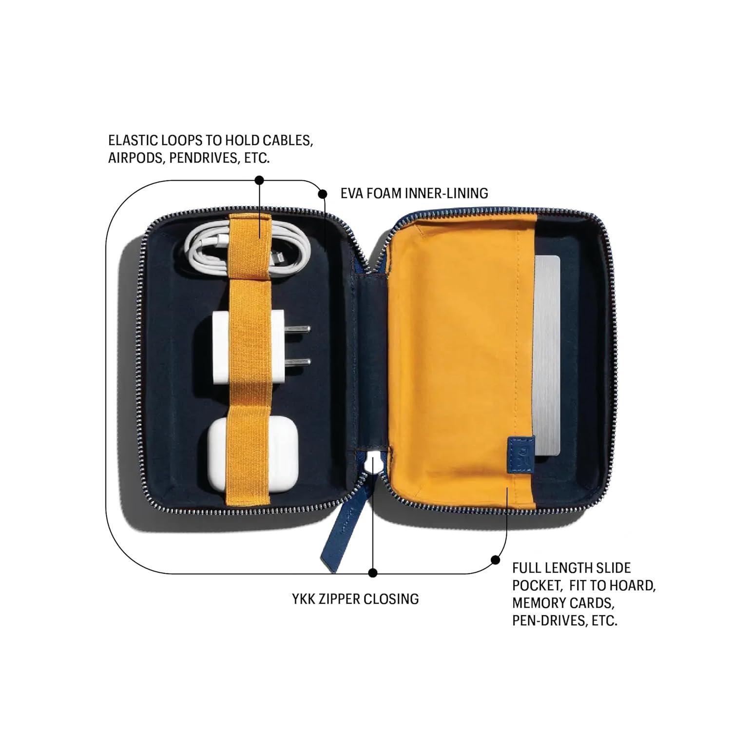 DailyObjects Leather Travel Electronic Accessories Storage Bag | Portable Gadget Organizer Case | Tech Kit Pouch for Cables, Drives, Chargers, Adapters, Power Banks | Charger Wire Organiser – Blue