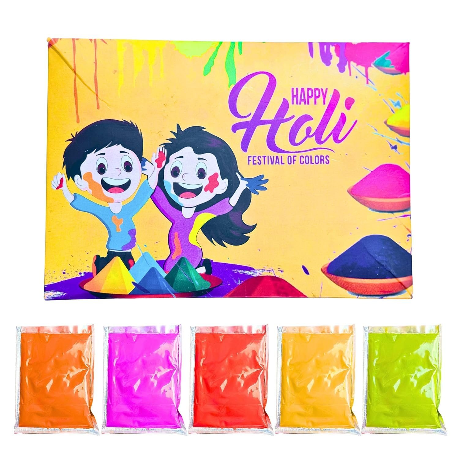 PACK CONTENTS: Set of 5 vibrant Holi colours in Lavender, Rose, Jasmine, Peony, and Eternity fragrances, 100 grams each for a total of 500 grams