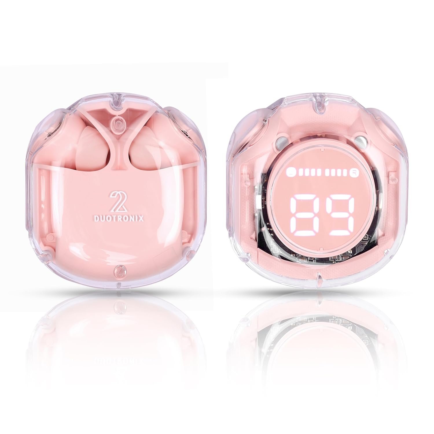 DUOTRONIX True Wireless in Ear Comfortable TWS Earbuds with Silicon Mic | 20 hrs Long Battery Life with Type C Fast Charging & Display | HiFi Sound Technology | Low Latency TWS Buetooth 5.3 (Peach)