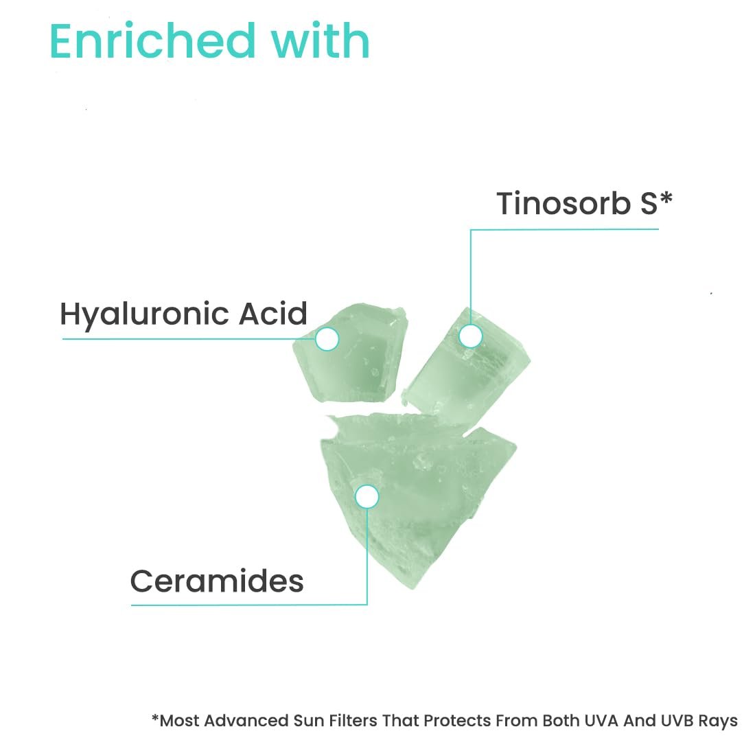 Ingredients: Caprylic Capric Triglyceride, Helianthus Annuus Seed Oil, Cyclopentasiloxane, Phenyl Trimethicone, Dimethiconol, C12-15 Alkyl Benzoate, Dimethicone Crosspolymer, Ethylhexyl Methoxycinnamate, Homosalate, Bis-ethylhexyloxyphenol Methoxyphenyl Triazine, Dibutyl Ethylhexanoyl Glutamide, Dibutyl Lauroyl Glutamide, Sodium Hyaluronate, Methyl Methacrylate Crosspolymer, Ceramide Complex, Tocopheryl Acetate.