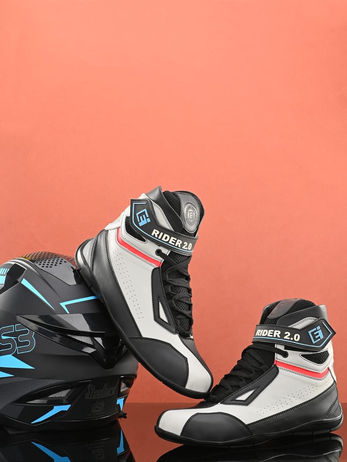 Eego Italy Rider-2, Water Resistant Biker Boot/Motorcycle Riding Boot, Light Weight & Anti Slip Sole, Padded in Socks, 3M Reflectors, walkable with shin and Ankle Protection_RIDER-2-GREY-11