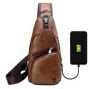 Elios Men’s PU Leather Multipurpose Daypack Shoulder Sling Bag Chest Crossbody Shoulder Chest Travel Bag with USB Charging Port Black