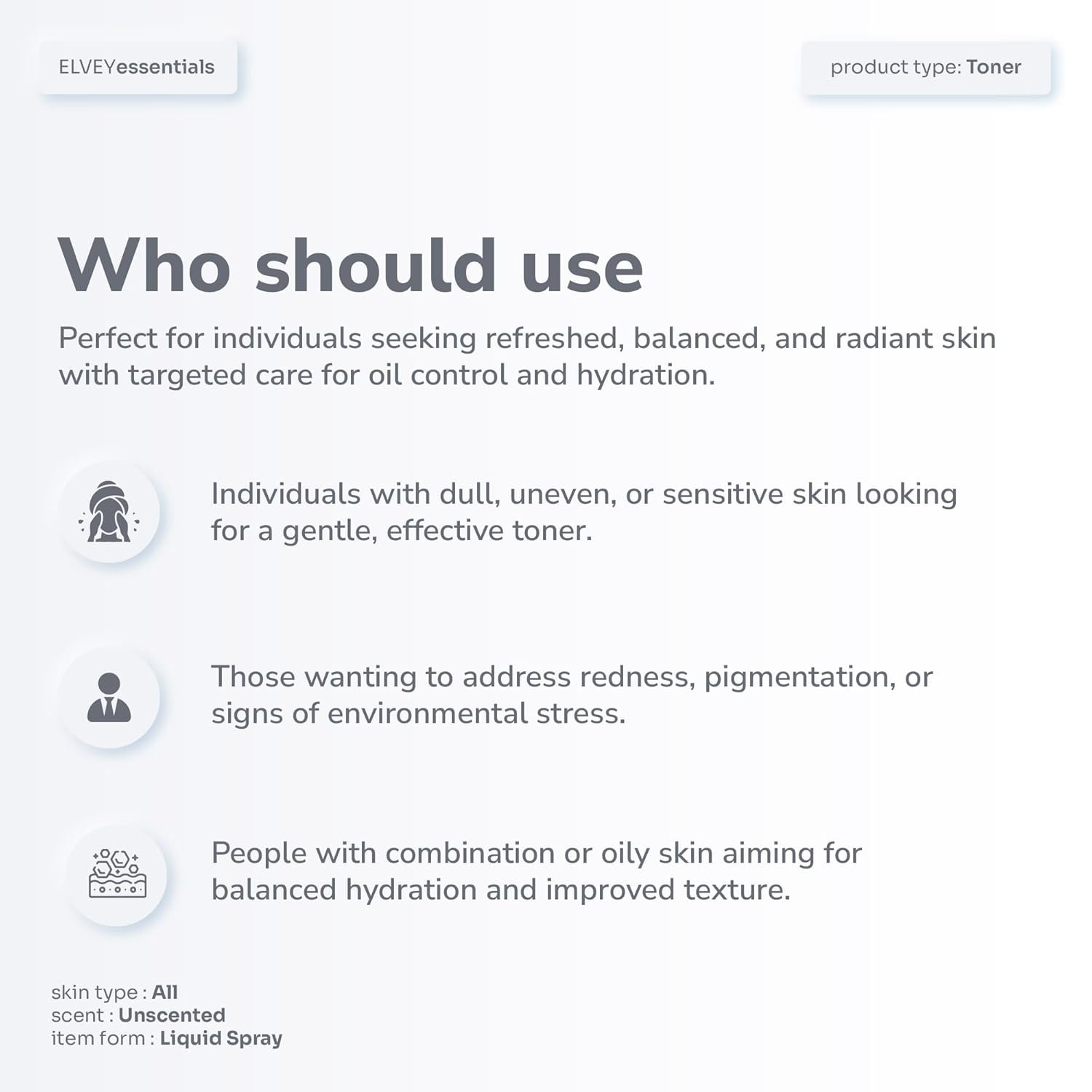Fragrance & Alcohol Free: Free from alcohol and artificial fragrances, this gentle toner hydrates and balances your skin without causing dryness or irritation.