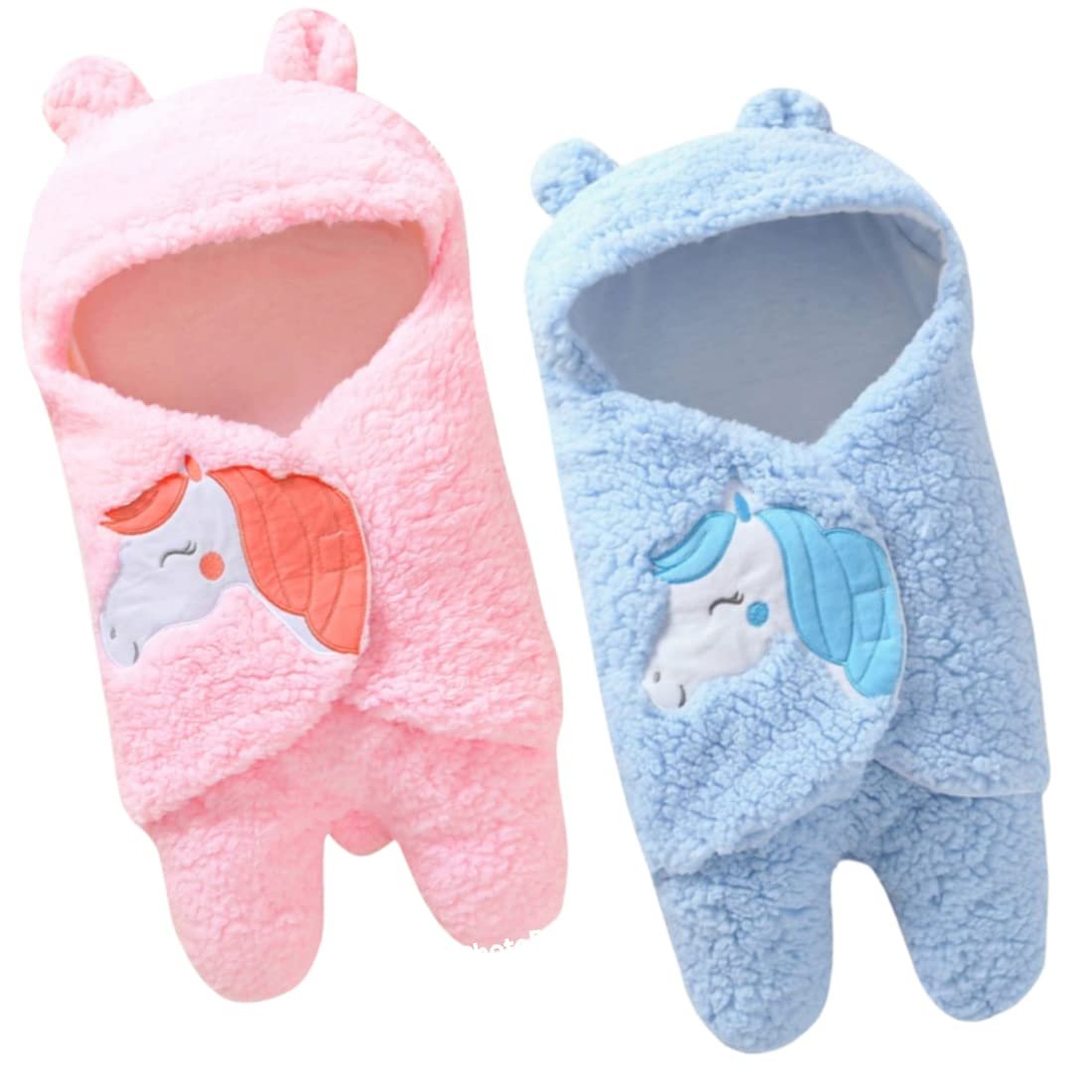 First Kick Combo Pack of Super Soft Micro Fleece Newborn Baby Blankets Wrapper Cum Sleeping Bag for Baby Boys, Baby Girls (76cm x 70cm, Multicolour , 0-6 Months) – Pack of 2 (Skin Friendly)